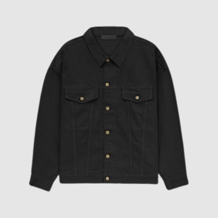The Essentials Fear of God Black Denim Jacket is crafted from premium heavyweight denim, offering durability, structure, and a classic streetwear edge. Checkout our premium Essentials Hoodies designed with a relaxed, oversized silhouette, it provides a modern layered look with dropped shoulders and a slightly boxy fit. The front features subtle Essentials Fear of God branding, while functional details include a button-up front, chest and side pockets, and adjustable waist tabs for a customizable fit. The interior is unlined for a lightweight feel, and the Fear of God Essentials rubberized label adds an authentic finishing touch.